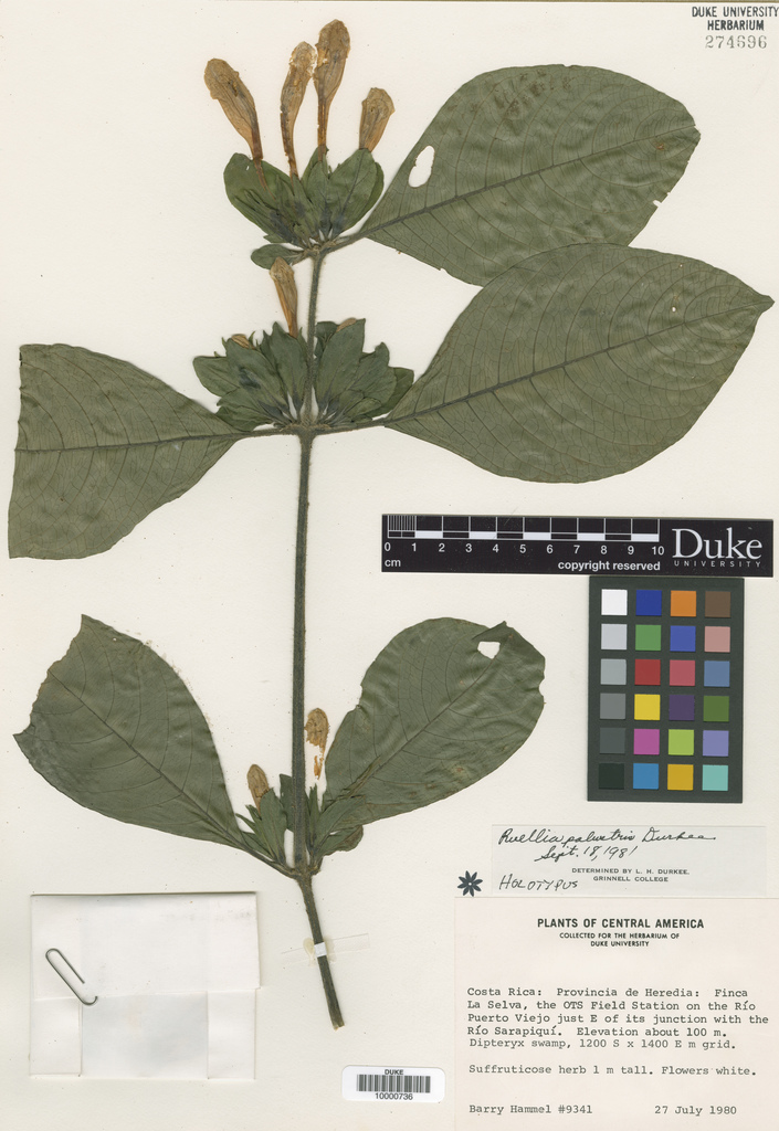 I have no idea what Ruellia palustris is related to. It is a narrow endemic and obviously a source of my anxiety until I can find and study it again. The type collection is from La Selva, near the junction of the Río Sarapiquí and the Río Puerto Viejo. Swamp forest, just like the epithet implies (thanks Durkee).