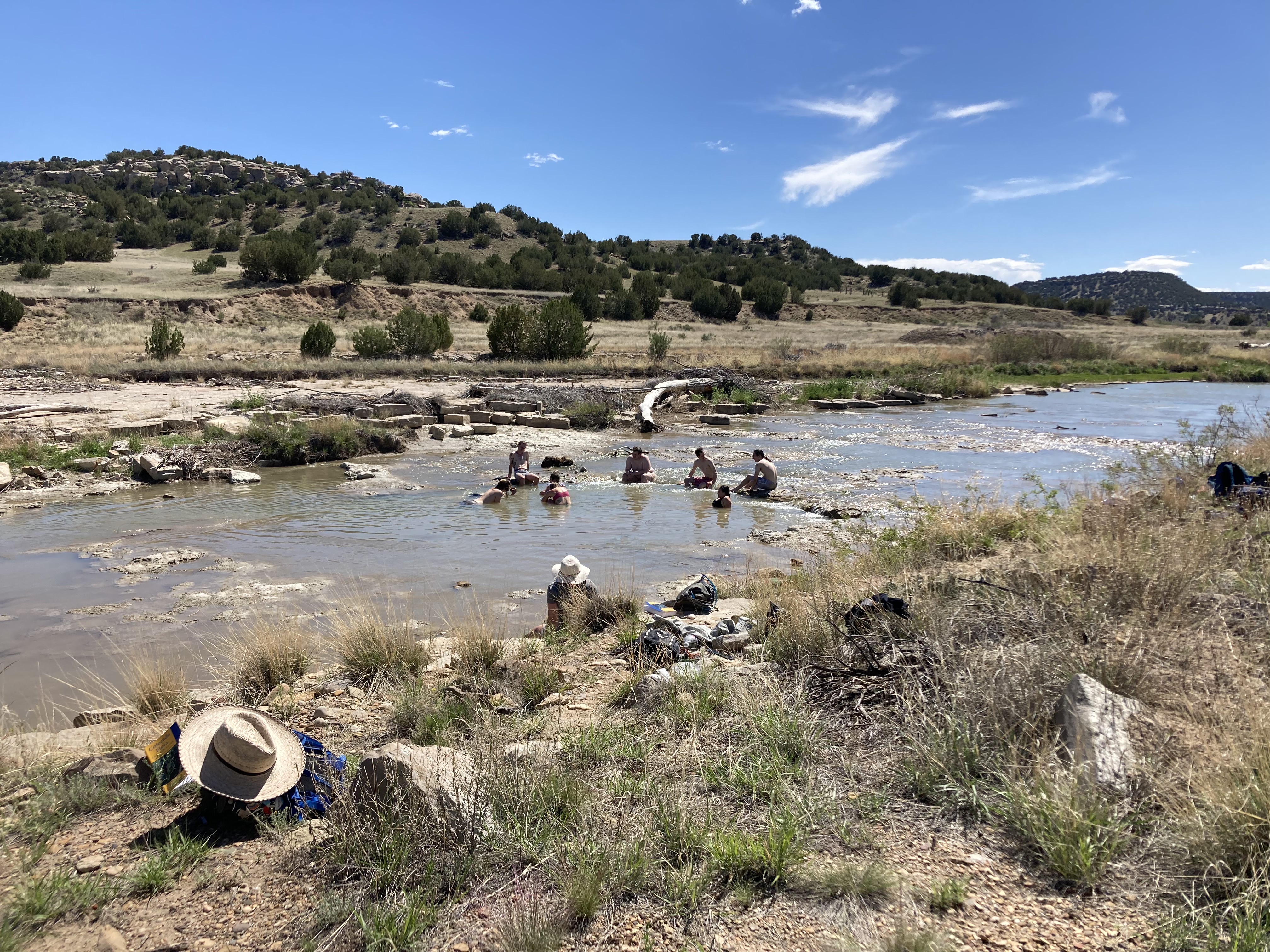 T2 (aka Matt), Mandy, and Bre ‘down by the riva’, scavenging for… tennis balls? bent metal?