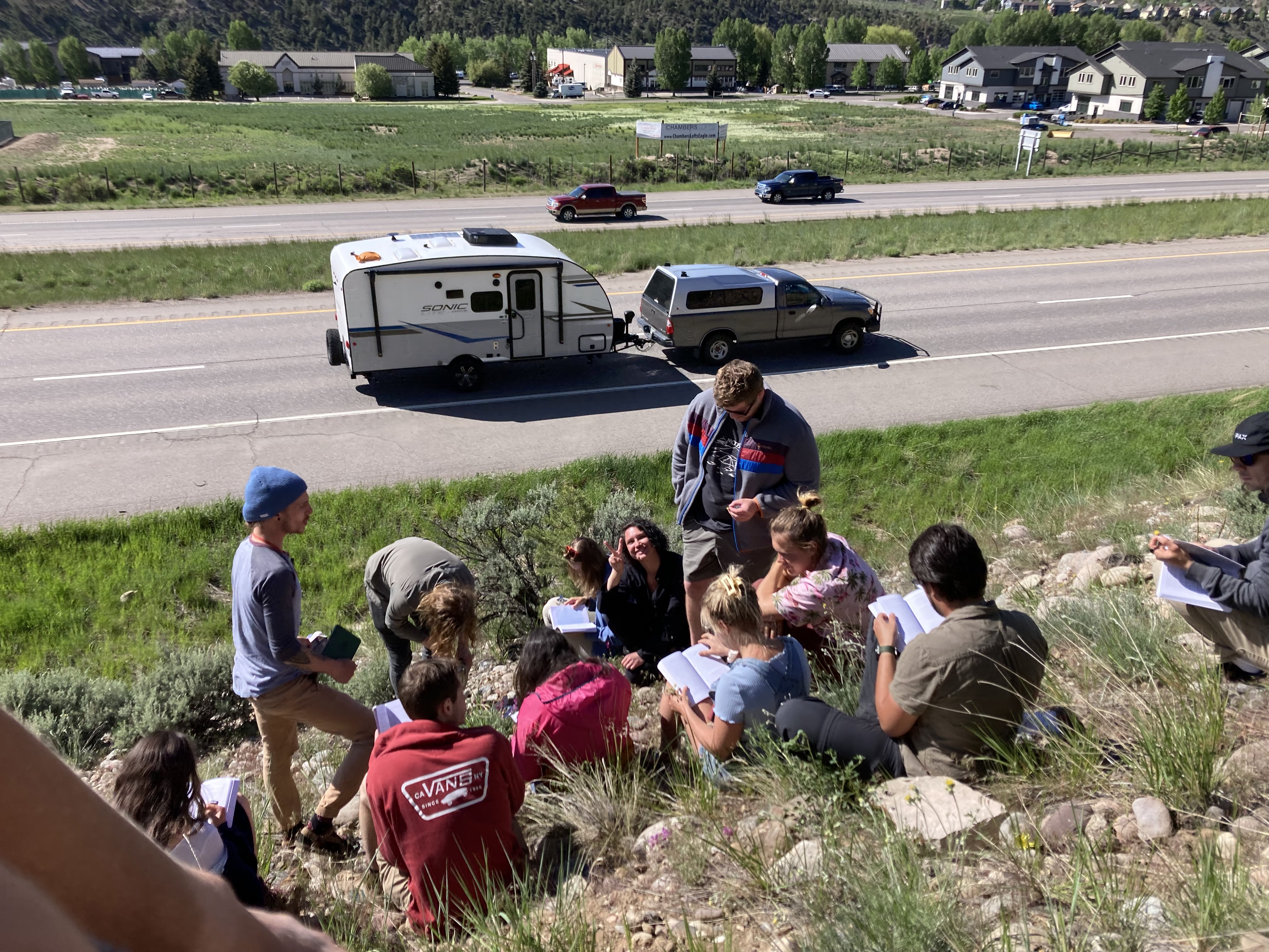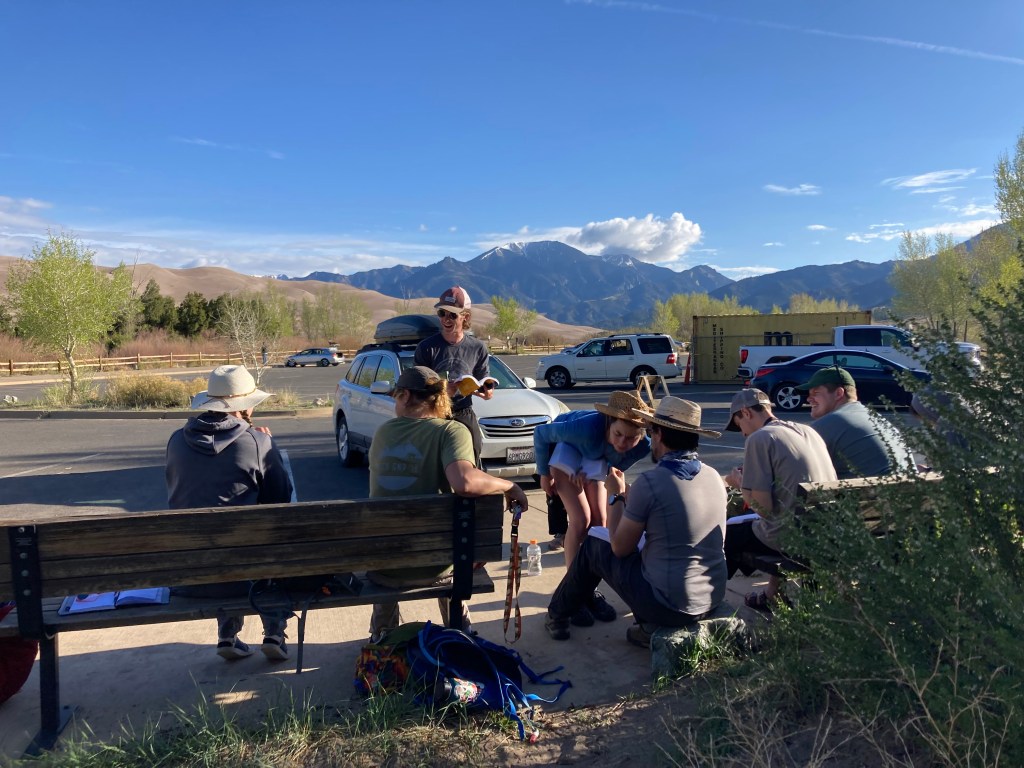 The full entourage of Lichen Biome students after a 4-day field trip to the Sangre de Cristo Mountains and Comanche Grasslands
